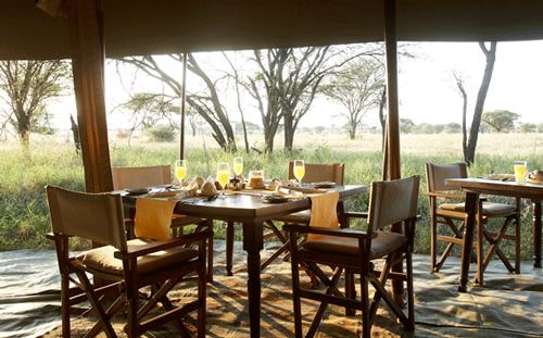 Then on to breakfast. A good breakfast to start off the day full of adventures. You are going to have an array of options. Cereals, variety of juices, eggs with warm bread sometimes cooked in the bush for a bush breakfast, bacon and potatoes and more. Nothing like having the most important meal of the day with a great view as you see here from Olakira Camp in Central Serengeti.