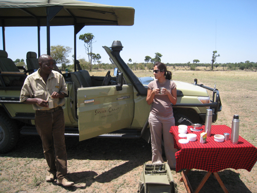 When on your game drive, you need a snack. Game driving is tough! Our vehicles carry water, soft drinks, juice and snacks which you can enjoy during your game drive. In some areas, like what we are experienced in Northern Serengeti with Sayari Camp guide Albert, you can stop, set a table and enjoy your snack with the animals close by. Don’t worry. Our guides will choose an open area away from the thick bushes. Prepare to enjoy your mid-morning or afternoon snack.