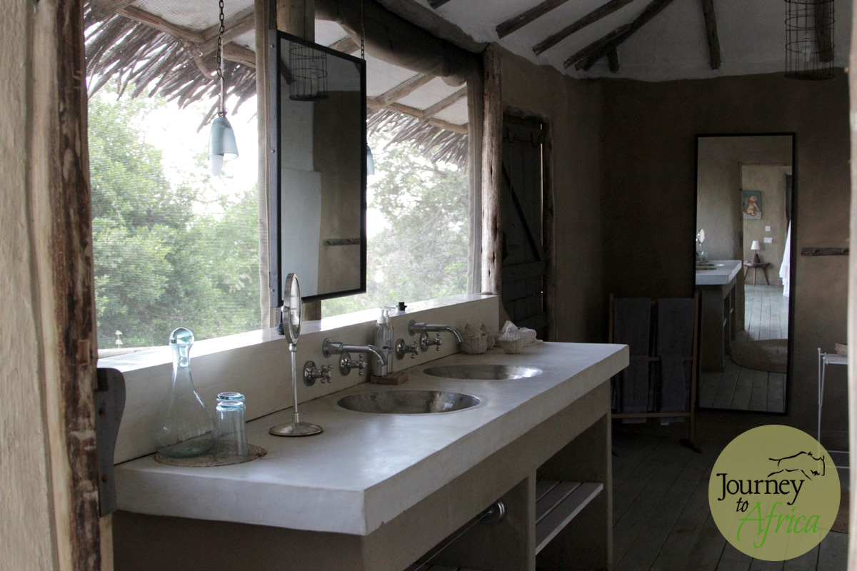 You will not bump into each other in this large bathroom. Using concrete, wood and local materials, this chic bathroom is sure to impress. Flush toilet, hot and cold showers, running sink water and all with amazing views of Serengeti.  Brushing never felt this pleasing.