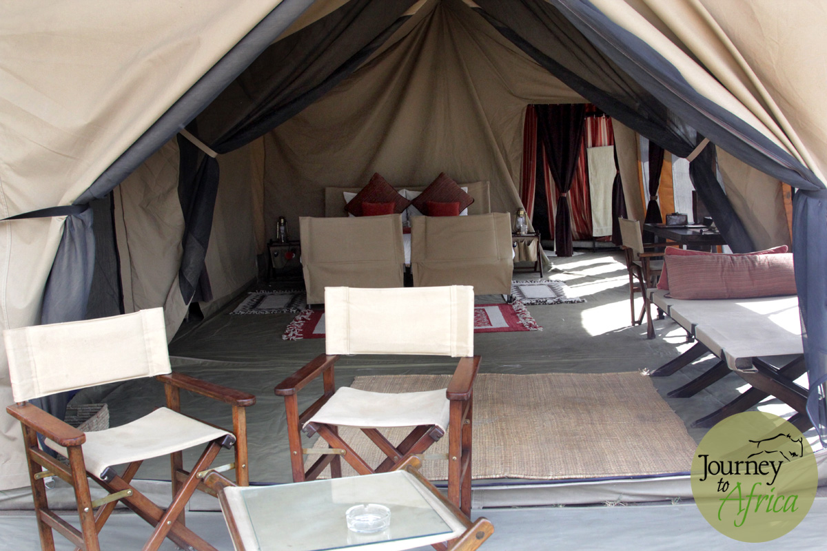 IMG_0611Cold refreshments were served in the dining + lounge tent while the manager checked us into the camp. For those interested, wi-fi is available here. Paul, who knows Ake Lindstrom, the owner of the camp, mentioned that Ake is very keen on supporting the local Maasai community. Most of the staff here are from close by Engare Sero village. Kudos!